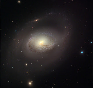 M99 is one of many spiral galaxies in the Virgo Cluster. Our own galaxy, the Milky Way, resides on the outskirts of this collection of many thousand galaxies. Unlike our own galaxy, M99 is disturbed due to interactions with other massive galaxies nearby (not shown). It almost looks as if the spiral arms are being blown by some celestial wind from below. While this is not true, at a distance of 60 million light years this galaxy proudly displays bright blue and red star formation in the its spiral armsMessier 100